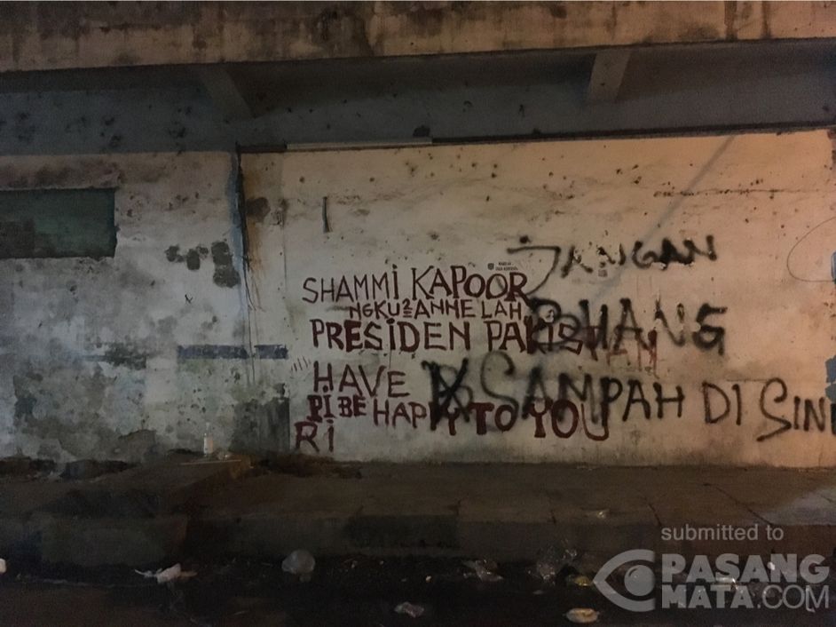 Ini contoh dari tangan jahil yang tak bertanggung jawab, mencorat-coret tembok bangunan di Jalan KH Wahid Hasyim sehingga tembok di jalan ini tampak kotor dan membuat mata tak sedap memandang tulisan hasil curahan hati dari tangan jahil tersebut.