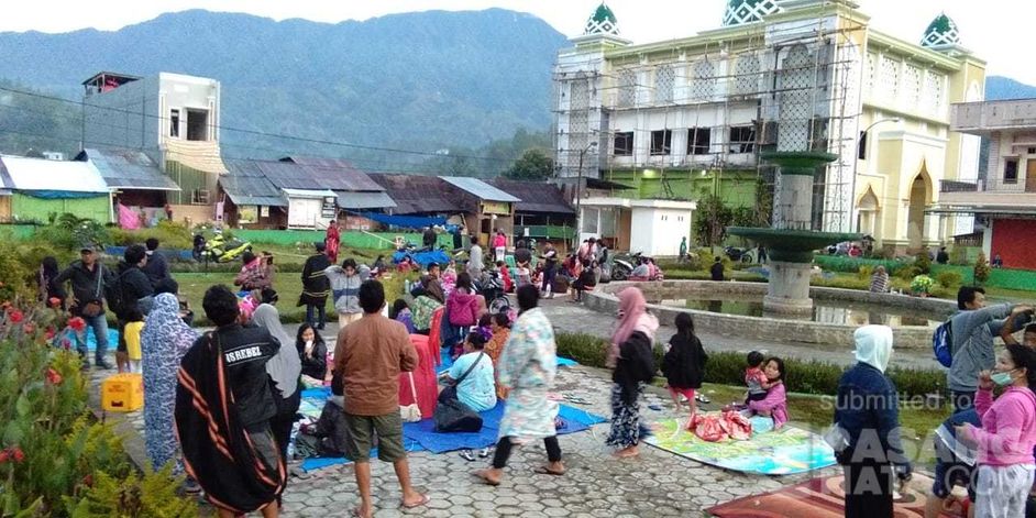 Pasca gempa yang berkekuatan 5.5 SR pukul 2.30 dini hari tadi (Selasa 6/11) mengguncang Kabupaten Mamasa, Sulbar yang terasa sampai seluruh Sulbar, puluhan warga masih memilih mengungsi di lapangan dan taman kota Mamasa. (Foto Frendi)