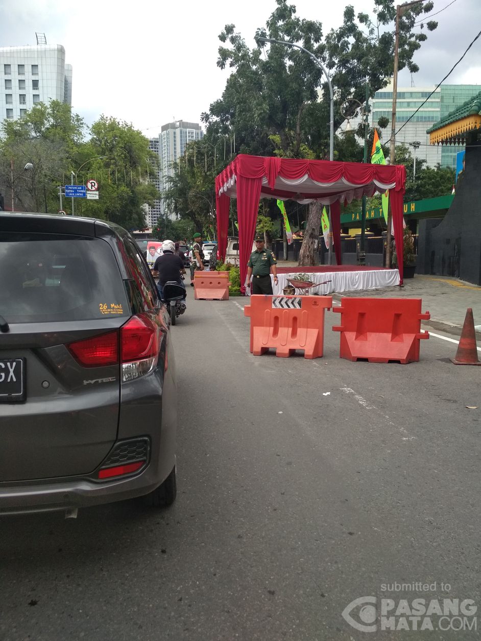 Beralih fungsi menjadi tempat panggung, trotoar dan bahu Jalan Pengadilan Medan kehilangan fungsi utamanya. Pejalan kaki kehilangan tempat melintas hari ini di jalan tersebut.