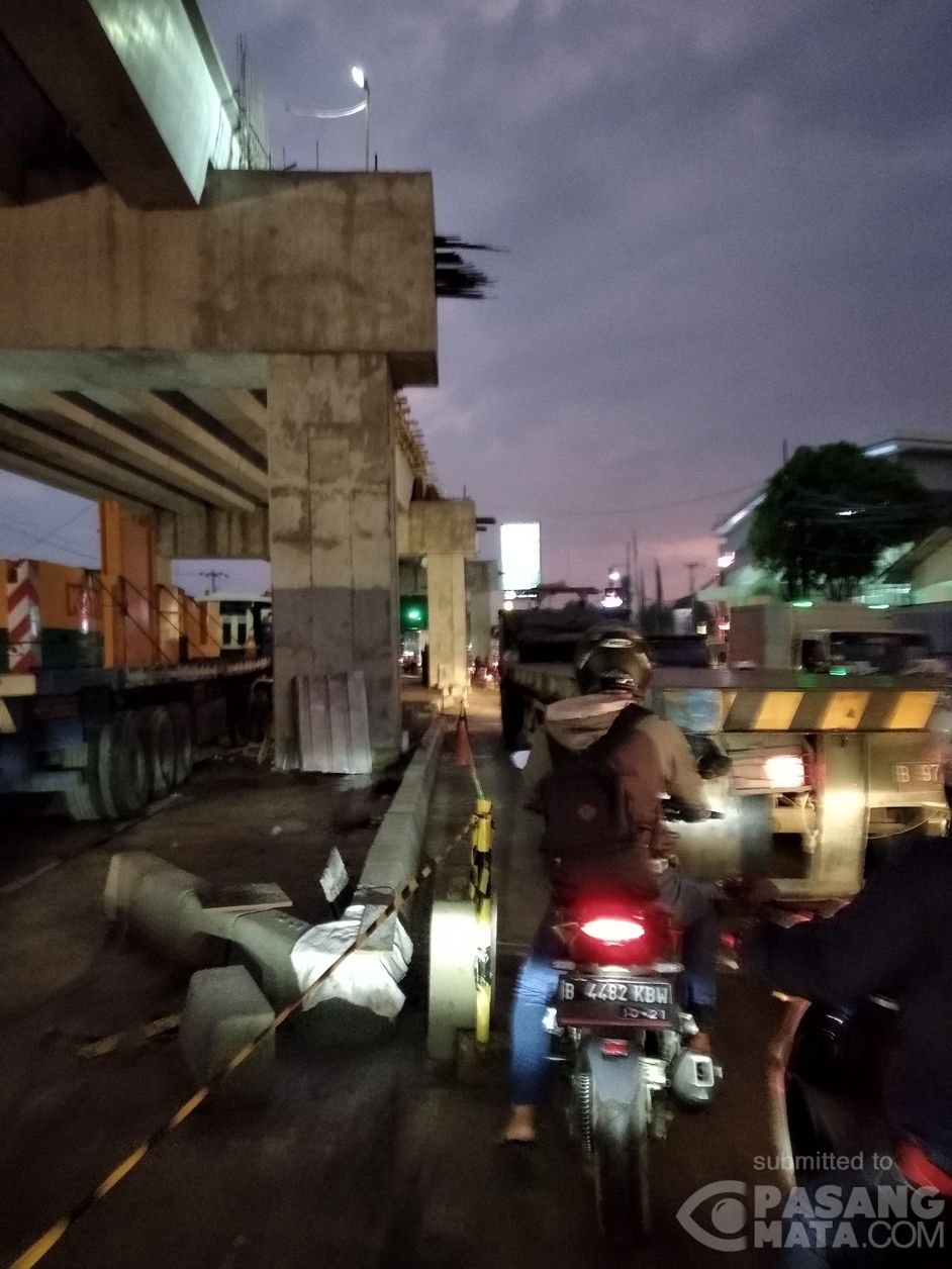 Imbas proyek flyover Cipendawa, jalur akses menuju Bantar Gebang kerap macet, Sabtu (24/11/2018). Macet kian sering terjadi di simpang jalan Nagorong terutama di jam berangkat kerja maupun pulang kerja. Jalan Cipendawa Kota Bekasi yang menjadi akses utama menuju Tempat Pengolahan Sampah Terpadu (TPST) Bantar Gebang. Kemacetan imbas adanya proyek pembangunan jembatan layang atau flyover Cipendawa.