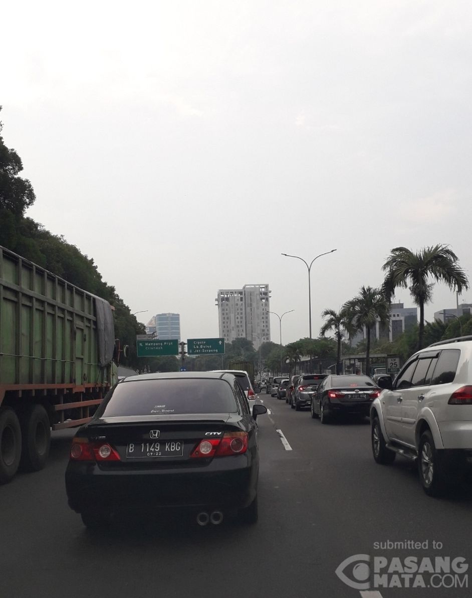 Kondisi arus lalu lintas sore ini di Tol JORR Km. 25 ruas Pasar Minggu arah Pondok Indah tampak padat merayap.
