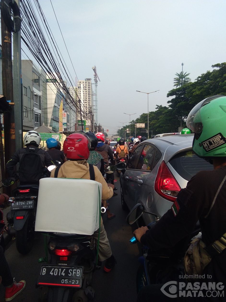 Penampakan pagi ini arus lalu lintas di Jalan Raya Sultan Agung, Manggarai Jakarta Selatan arah Kuningan macet.