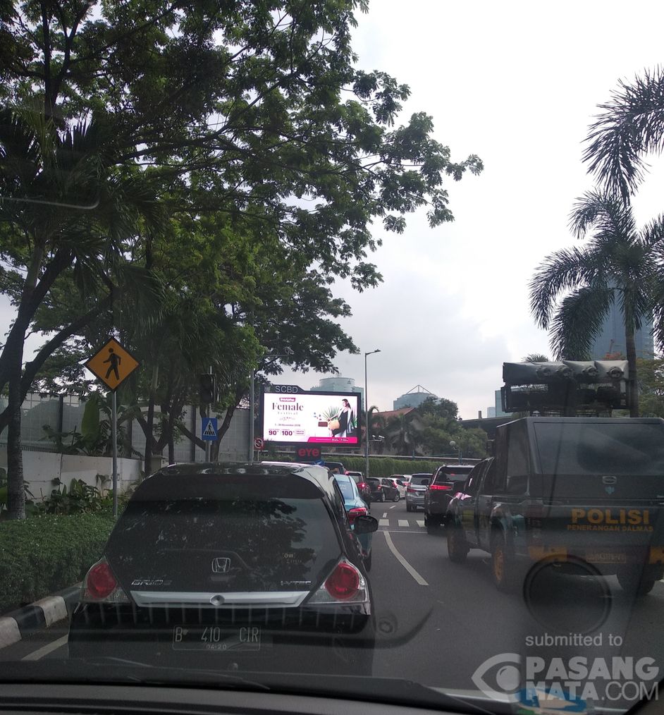 Keluar kawasan SCBD Sudirman menuju jalan Gatot Subroto terpantau padat merayap.