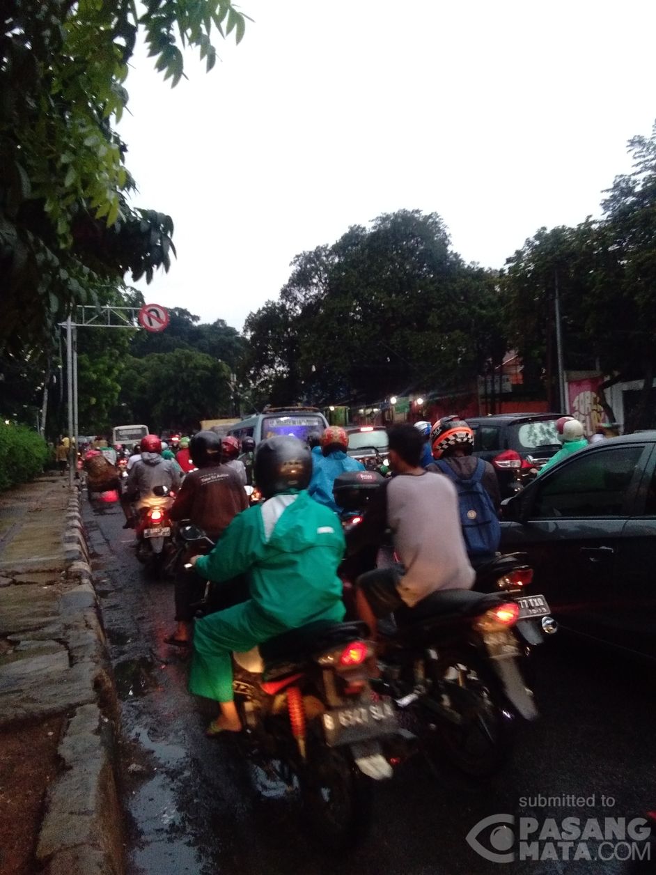 Kelakuan pengendara bila berada di lampu merah. Maju ke depan lewati batas garis agar bisa jalan duluan. Padahal sangat membahayakan. Lokasi lampu merah Kalibata - Pasar Minggu.