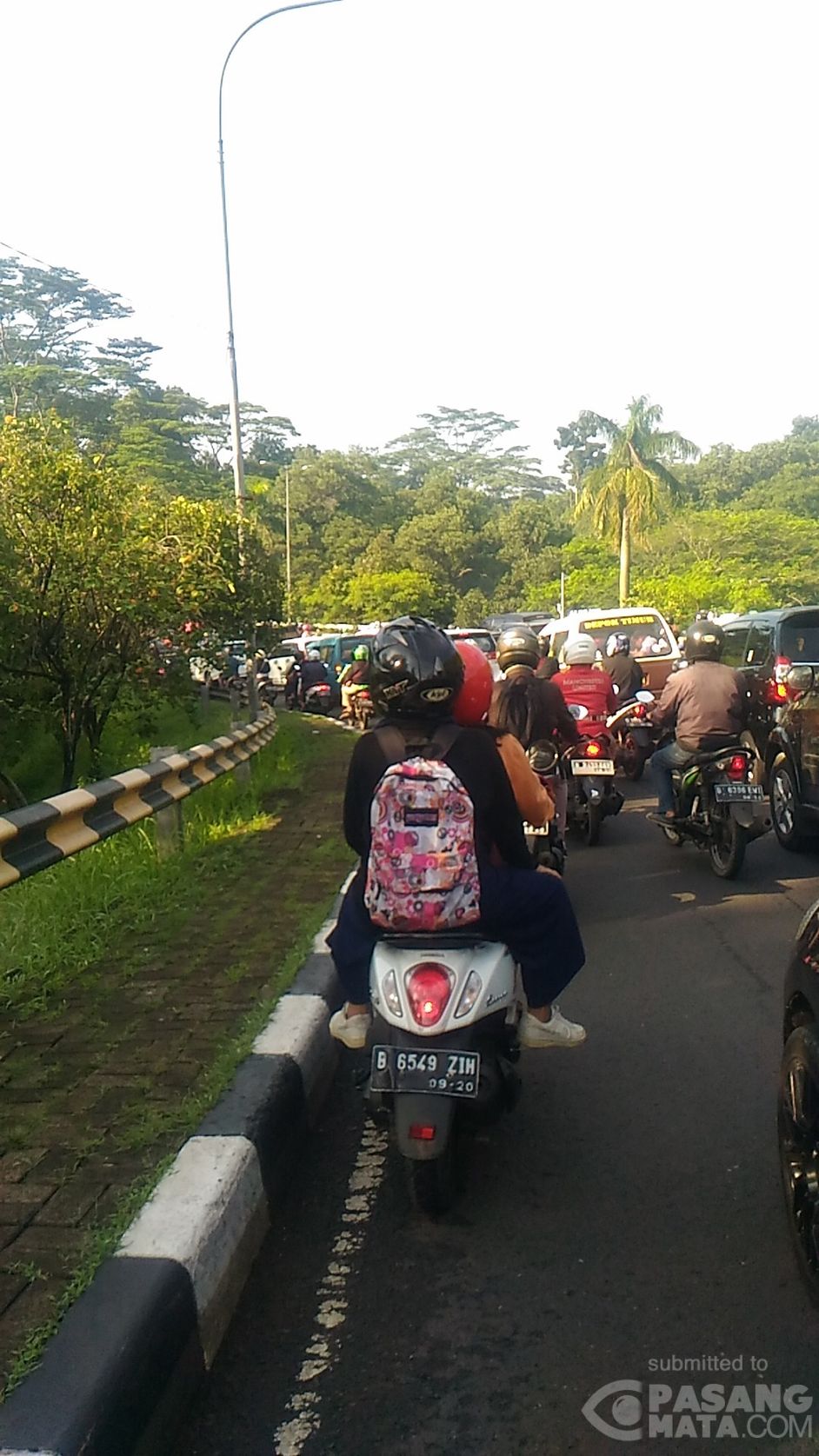 Arus lalu.lintas di jembatan lingkar Universitas Indonesia (UI) Depok menuju Srengseng Sawah, Jakarta Selatan tampak padat merayap