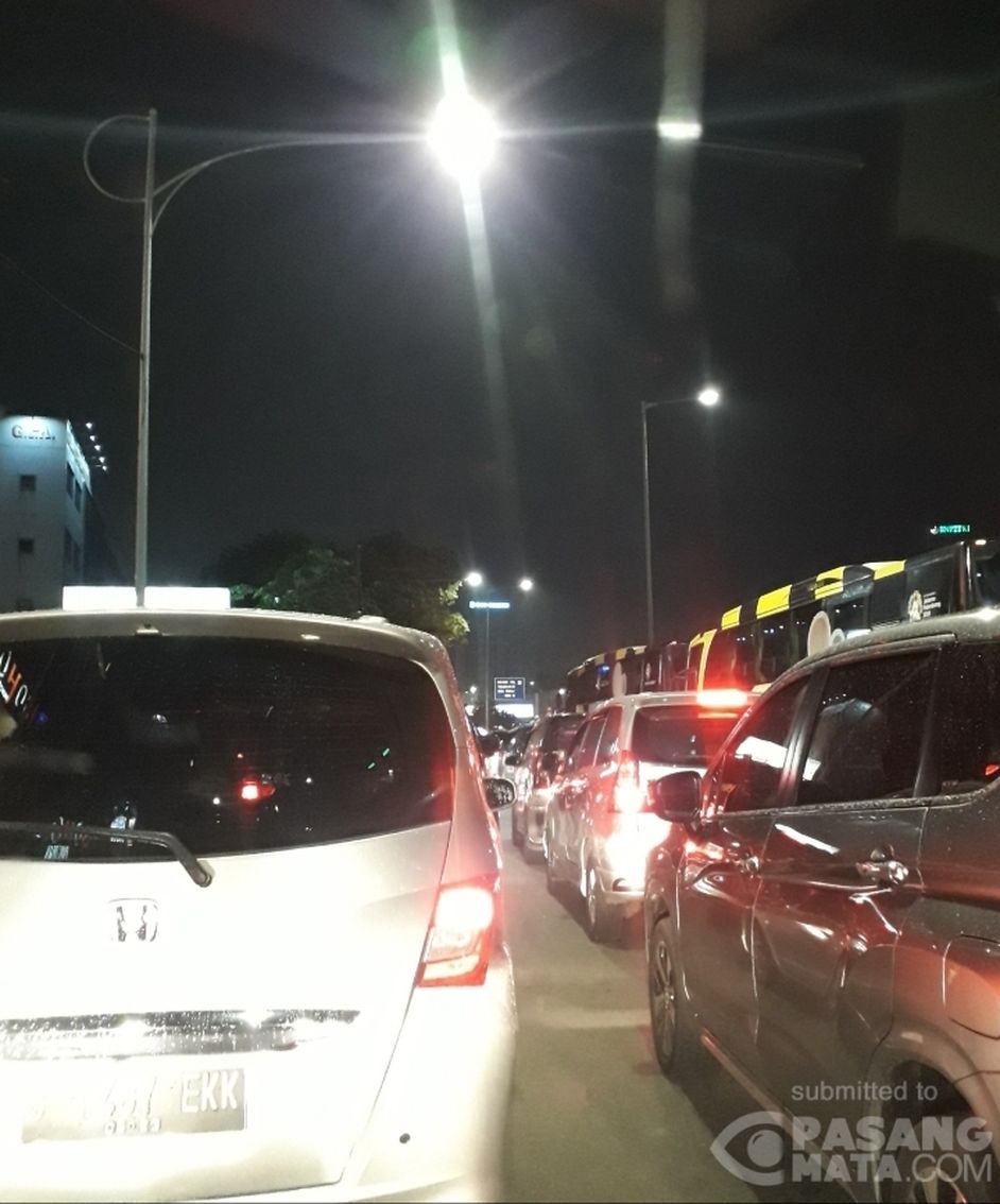 Kondisi arus lalu lintas malam ini di Jl. MT Haryono ruas Tugu Pancoran arah Cawang tampak padat merayap.