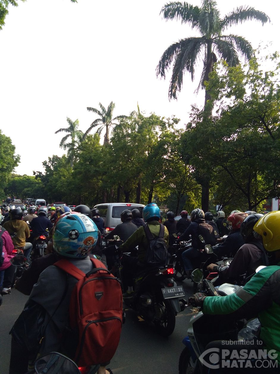 Situasi pagi ini arus lalu lintas di jalan Margonda Depok, Lingkar UI arah Srengseng Sawah padat merayap