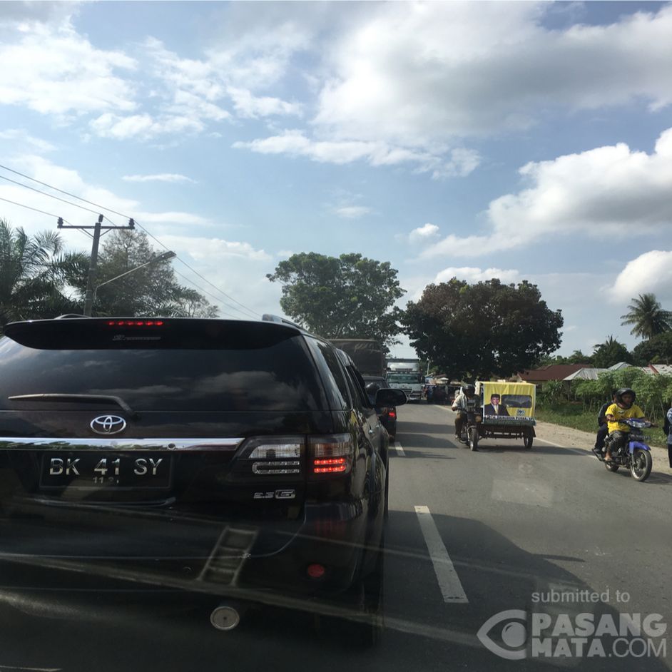 Arus lalu lintas dari arah Stabat menuju Tanjung Pura tampak padat setelah jembatan Stabat terpantau.