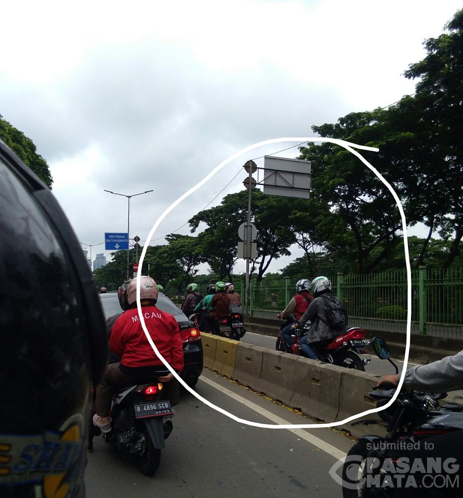 Pengendara ini demi menyingkat waktu dan menghindari macet, nekat masuk jalur transjakarta Guntur Jakarta Selatan walaupun itu melanggar lalu lintas.
