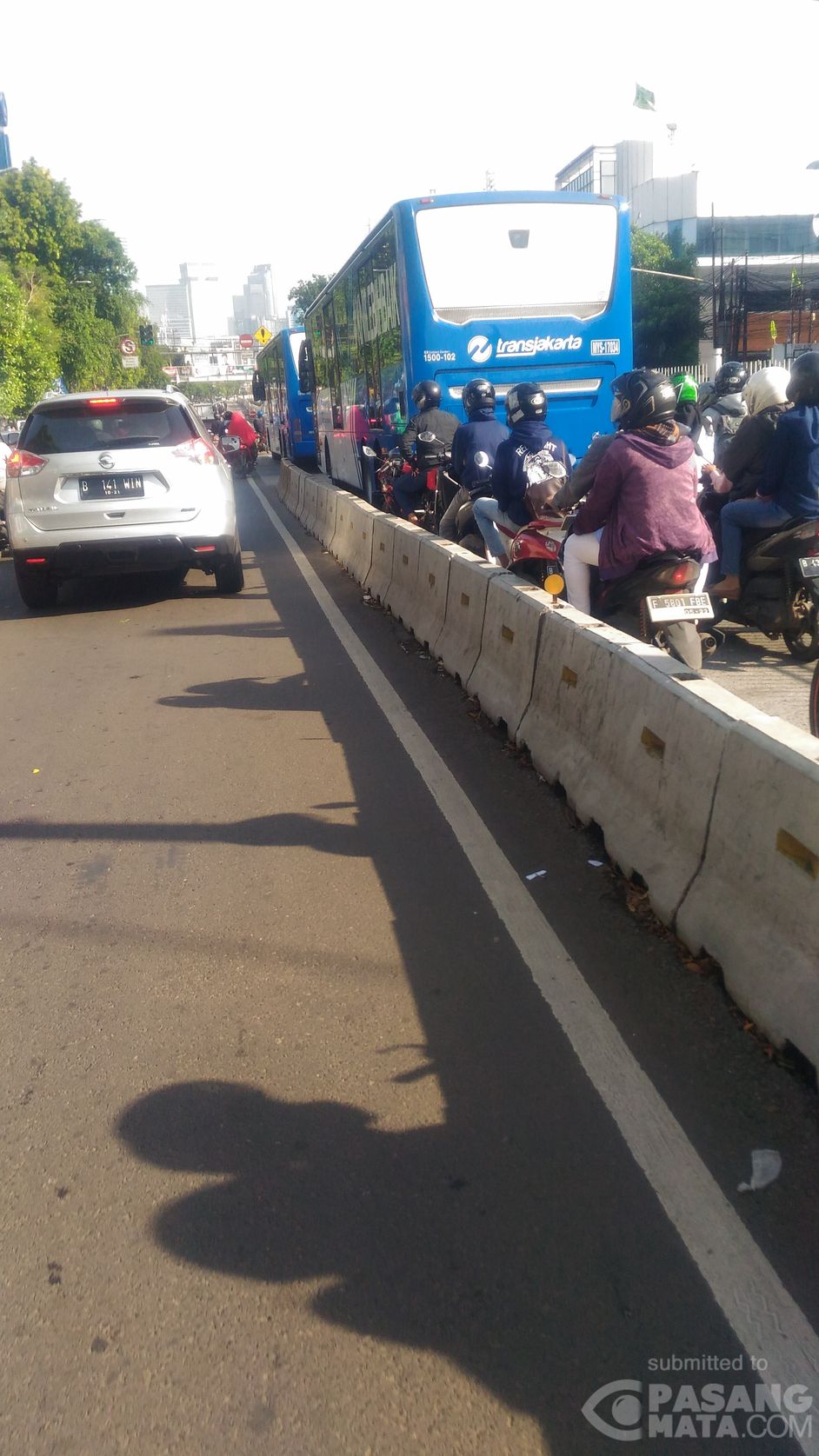 Inilah cara yang dilakukan pengendara motor mencari jalan pintas masuk jalur transjakarta Mampang Jakarta Selatan malah terjebak macet