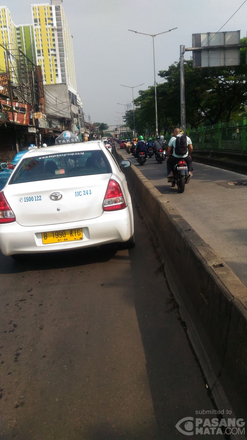 Hampir setiap hari, ada saja pengendara yang nekat masuk jalur transjakarta di Pasar Rumput, Jakarta Selatan.
