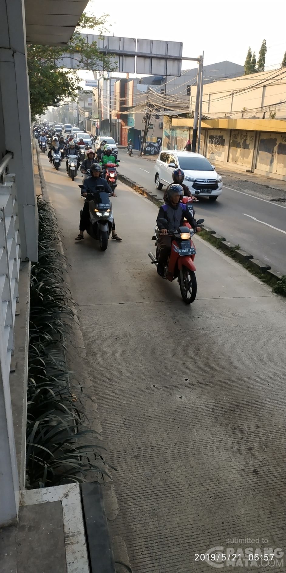 Berjamaah masuk jalur Transjakarta pagi-pagi, nampak pengendara motor melintas jalur busway di depan halte busway Pasar. Enjo, Jatinegara, Jakarta Timur padahal kondisi lalin tidak macet. seharusnya dibulan puasa ini mari kita tingkatkan kesabaran dan lebih tertib dalam berlalu lintas selalu utamakan keselamatan untuk pribadi dan orang lain #jalurbusway #lalulintas