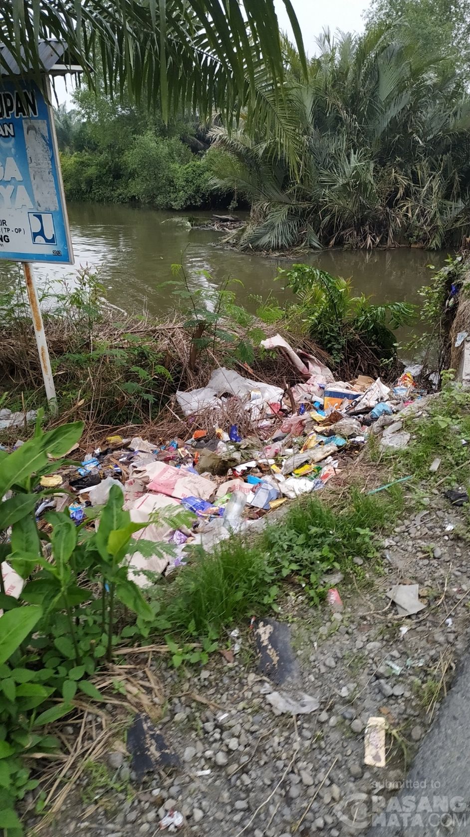 Buang sampah di tepian sungai, dengan resiko sampah akan terjatuh ke sungai yang berdampak selain bisa mencemarkan air sungai sampah-sampah tersebut bisa merusak populasi ikan yang ada disungai tersebut. Kurangnya kesadaran dari masyarakat sekitar yang buang sampah disini.