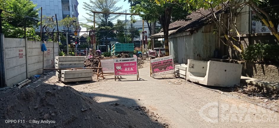 Proyek saluran air di Jalan Putat Gede ini menutup seluruh akses jalan menuju Jalan Hr. Muhammad Surabaya.
