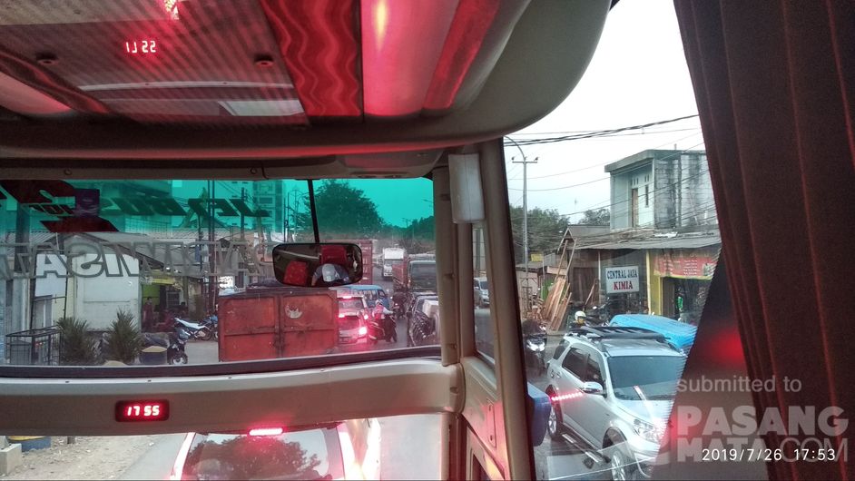 Macet total lalin dari Cileungsi-Bantargebang hingga memakan waktu 2 jam 30 menit dan belum tembus