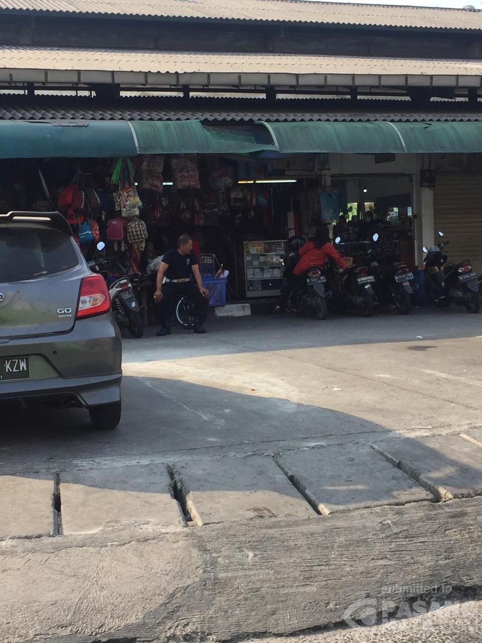 Gagah, sigap dan waspada sikap terlihat dari sosok bapak tersebut. Seolah menjaga agar pasar tetap aman sentosa. Walaupun di hari Sabtu waktunya berkumpul dengan keluarga, tetapi bapak ini siap sedia menjalankan tugasnya. Lokasi di Pasar Jembatan Merah, Tebet.