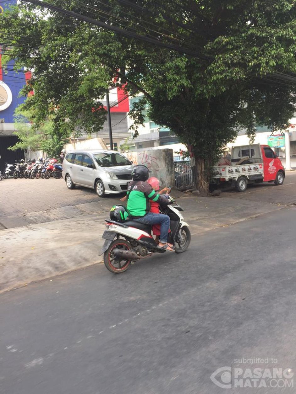 Pada tanggal 29 Juni 2019 sekitar pukul 11.35 di daerah jalan Prof Dr. Saharjo, terlihat pengendara ojek online membawa turut serta anaknya yang dibonceng di depan mengenakan helm pink. Sungguh mengharukan ketika ada pengendara ojek online yang menggunakan atribut kerjanya nyambi menjalankan perannya sebagai orang tua