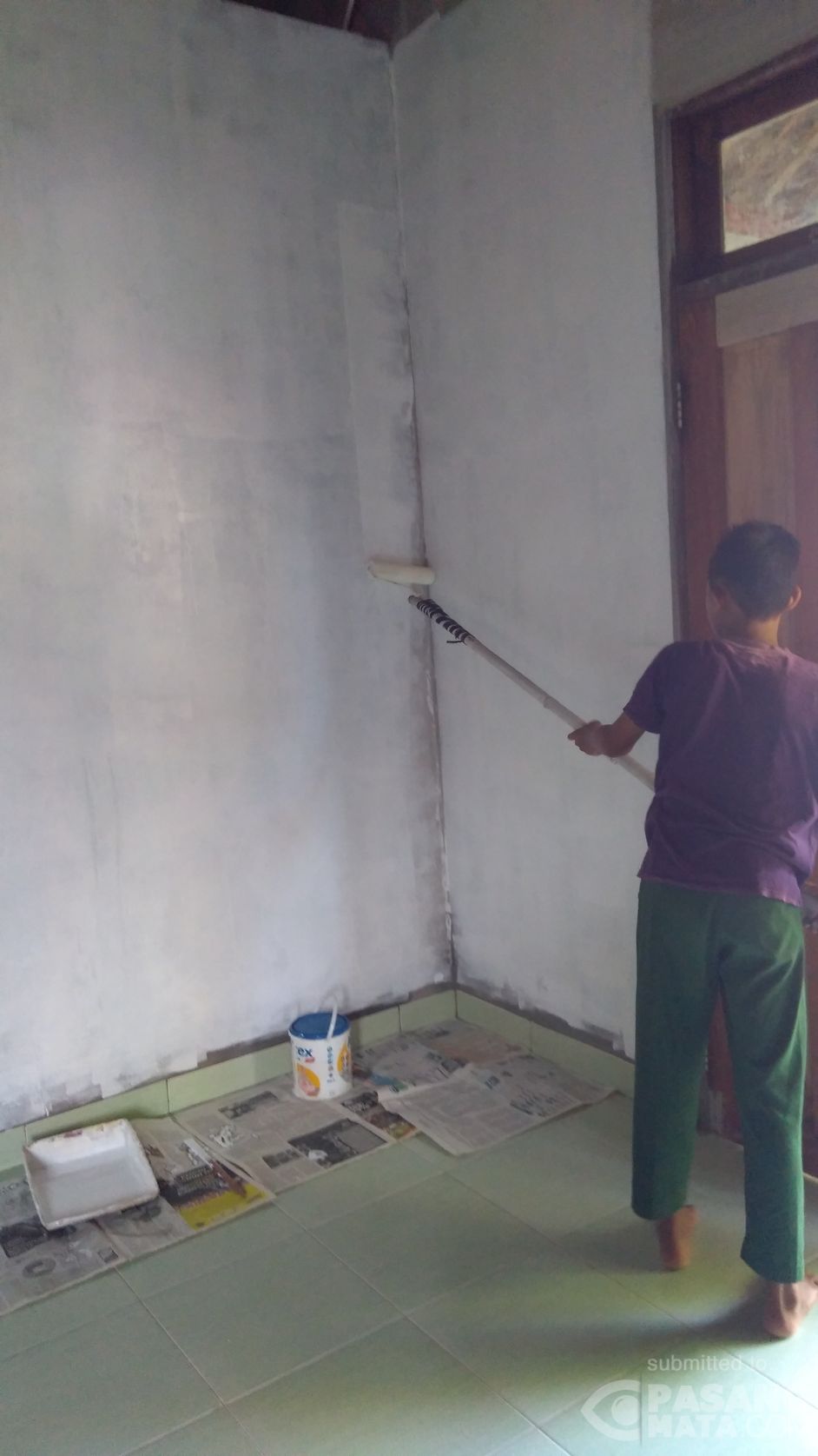 Demi untuk bisa meringankan biaya sekolah, anak ini melakukan pekerjaan dengan memborong cat rumah warga yang mau mengecat rumah. Lokasi di Kecamatan Purworejo.