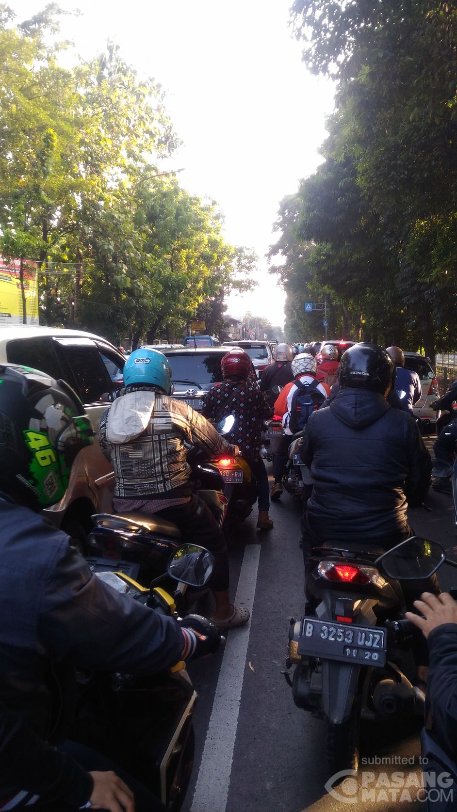 Pagi ini arus lalu lintas di Jalan Raya Lenteng Agung menuju Tanjung Barat Jakarta Selatan tampak padat merayap.