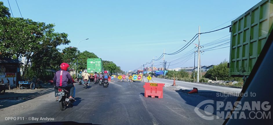 Hati hati, ada proyek pengecoran jalan di raya Tambak Langon Surabaya.