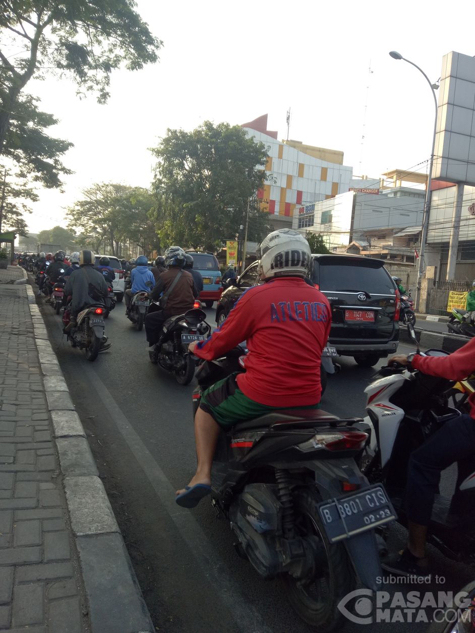 Kemacetan panjang terjadi pagi ini di Jalan Raya Cimone arah Tangerang Kota mengular panjang