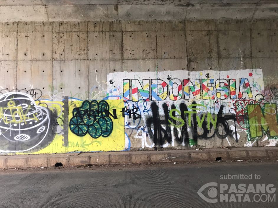 Proyek belum kelar, kolong flyover Ambara malah diwarnai dengan coretan tangan-tangan iseng kurang bertanggung jawab.