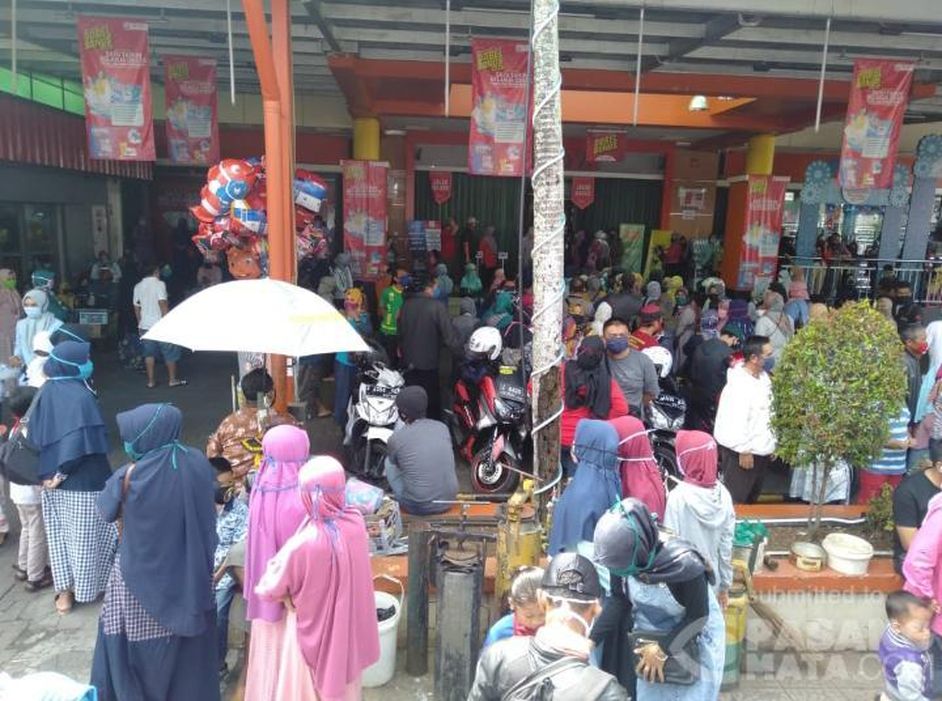 Inilah pemandangan di depan pintu masuk pusat perbelanjaan yang ada di pusat kota Ciamis, Sabtu, (16/5/2020) siang. Walaupun dalam masa PSBB, namun masih banyak masyarakat yang akan berbelanja, sehingga membludaknya keluar gedung perbelanjaan tersebut.