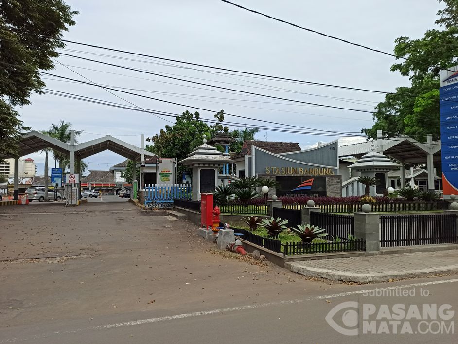 Kondisi bagian depan Stasiun Bandung yang lenggang oleh calon penumpang di Jalan Kebon Kawung Bandung