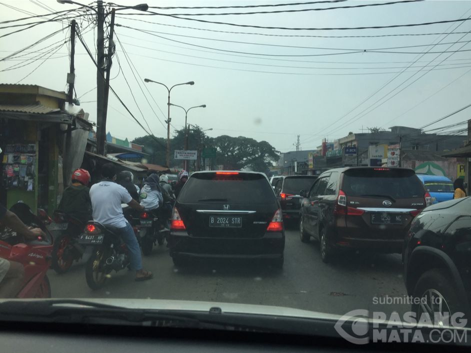 Jelang Pasar Parung macet total, meski dalam masa PSBB masih banyak warga yang berkegiatan di luar rumah hingga menyebabkan macet