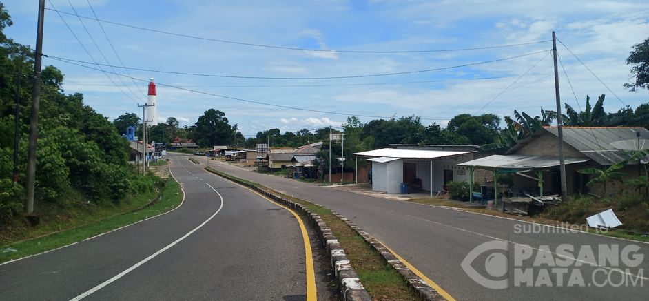 Inilah situasi jalan pada Senin sore (18/5) sebelum masuk pintu gerbang Tanjung Kalian Muntok. Kini tidak terlihat satu kendaraan pribadi pun yang biasanya menggular panjang seperti kereta api menjelang lebaran. Kini sepi, biasanya antrian bisa mencapai panjang 1km.