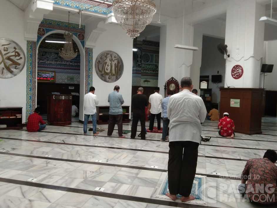 Suasana di Masjid Cut Meutia yang berada di kawasan Kebon Sirih, Jakarta Pusat. Masjid ini masih menerapkan protokol kesehatan, selain wajib memakai masker, di sini masih menerapkan shaf yang selang-seling. Selain itu, belum ada karpet yang terbentang untuk solat berjamaah sehingga jamaah diimbau untuk membawa sajadah sendiri.