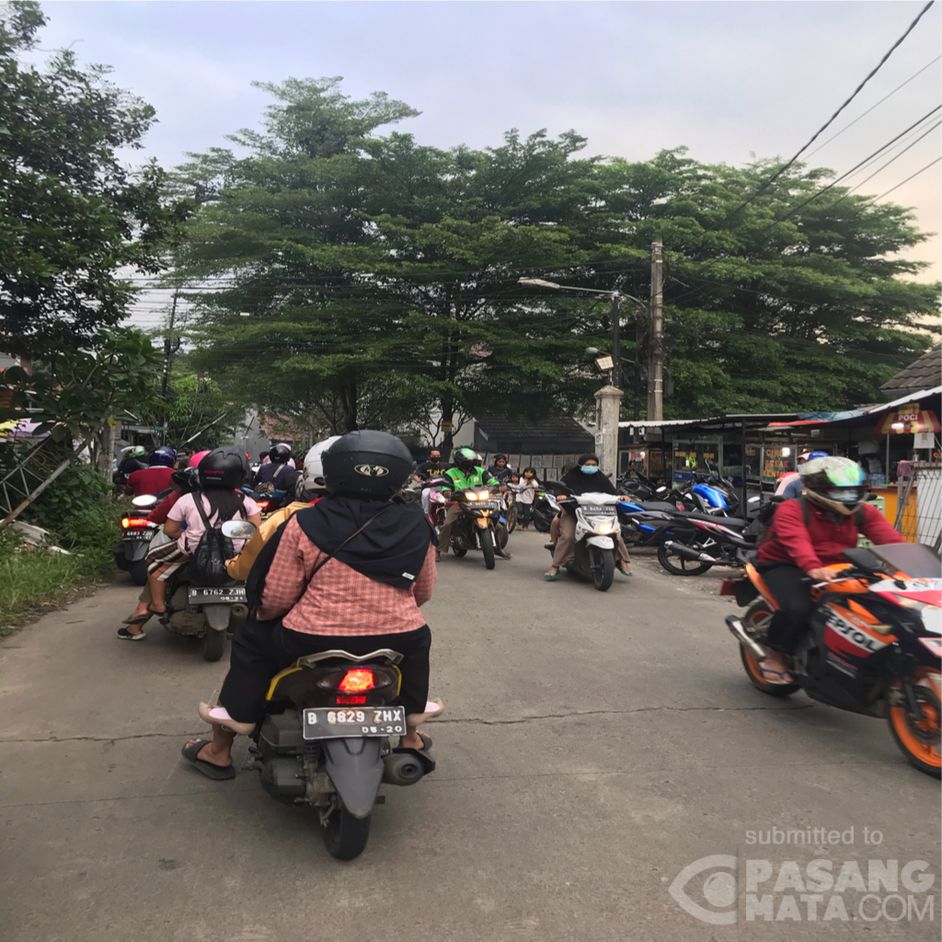 Terjadi kepadatan kendaraan di Jalan Rajawali, Limo. Kepadatan kendaraan disebabkan meluapnya pedagang makanan takjil serta pembeli yang menutup bahu jalan