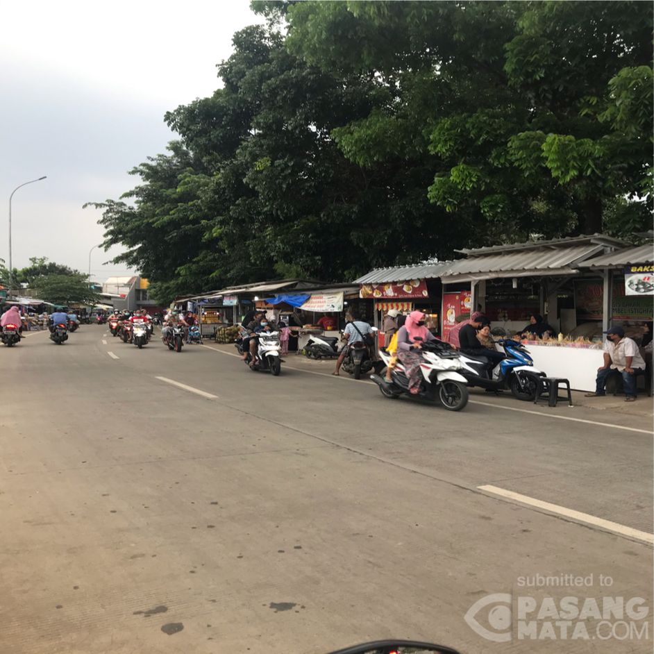 Menuju waktu berbuka, warga sekitar serta pemotor yang melintas mulai penuhi penjual makanan di jalan Pendowo Raya, Depok untuk membeli kebutuhan untuk berbuka puasa.