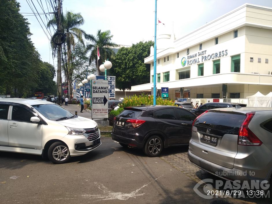 Antrean mengular tes Covid-19 siang hari di Rumah Sakit Royal Progress Danau Sunter, Jakarta Utara (29/6). Ayo Vaksinasi sekarang!