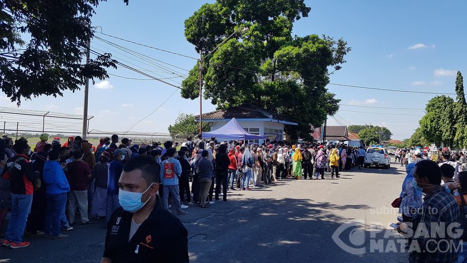 Ratusan penduduk Surakarta memenuhi antrean vaksinasi Covid di Lanud Adi Soemarmo Solo