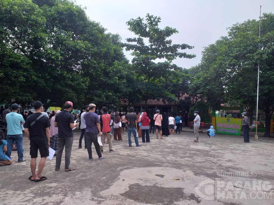 Antusias warga Jatisari dan Jatiluhur, Jatiasih Bekasi antre vaksin yang digelar di halaman kelurahan.