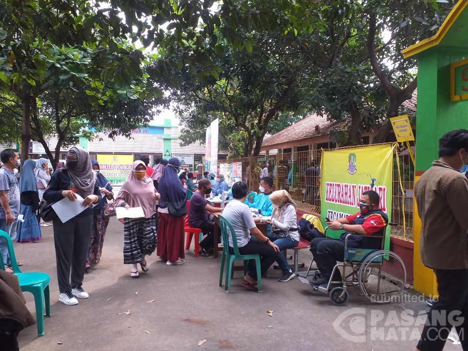 Warga Jatisari dan Jatiluhur Bekasi tes kesehatan sebelum divaksin. Namun sebelum divaksin terlebih dahulu dilakukan tes swab. Bila hasilnya negatif bisa langsung divaksin.