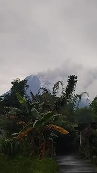 Guguran awan panas Gunung Merapi terlihat dari Turi, Sleman, Minggu (9/11/2025). Menurut Badan Geologi, luncurannya mengarah ke hulu Kali Krasak. Saat ini status Gunung Merapi berada pada Level III atau Siaga. Sementara aktivitas warga tetap seperti biasanya.