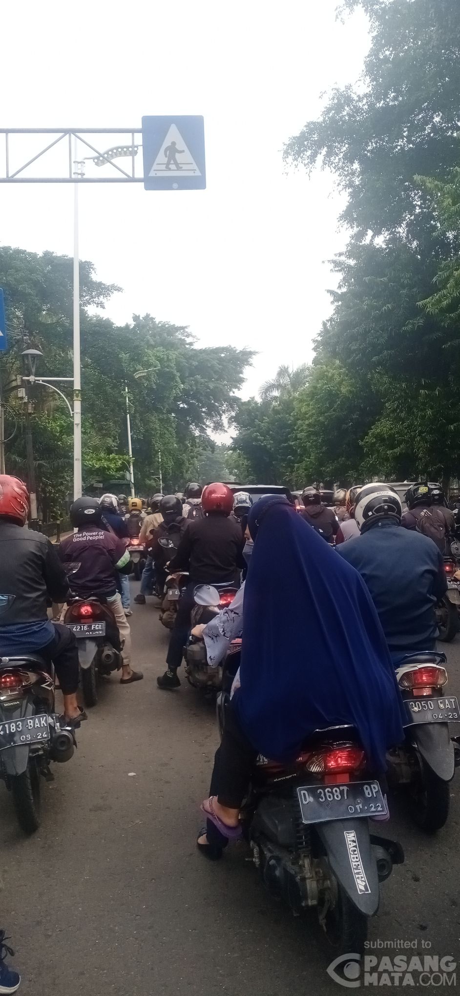 Arus lalulintas di jln raya Lenteng agung tampak padat merayap mulai dari Srengseng sawah Jakarta Selatan sampai fly over Lenteng agung