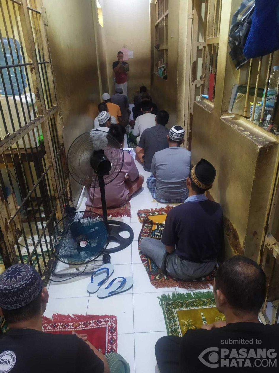 Tahanan Polres Bangka, mendapat pembinaan rohani dan mental, di bulan suci ramadan, Jumat (08/04/2022). Giat dipimpin Kasat Tahti Polres Bangka, Ipda Ariyanto. (heru sudrajat)