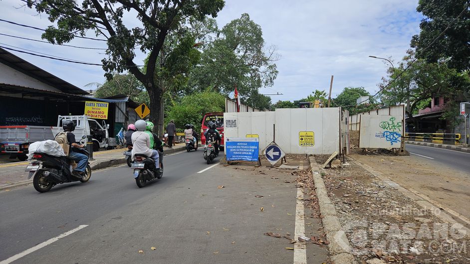 Galian pipa air yang masih tersisa di Jalan H. Bokir Bin D'jiun arah Kramatjati. Posisi tengah-tengah jalan menyebabkan lalu lintas tersendat.