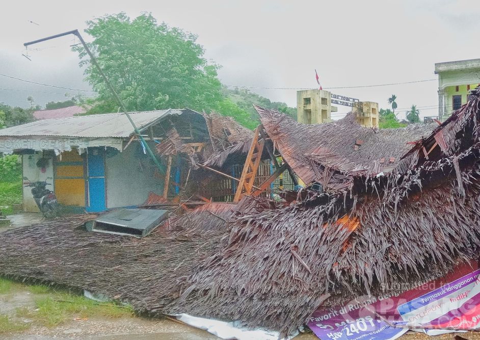 Sebuah ruko milik saudara Yusuf { wakcuk) roboh setelah di hujan deras dan Angin kencang melanda wilayah Kota Lhokseumawe, pada Rabu 26 /11/25 ,kejadian ini pada jam 2 pagi . Tak ada korban jiwa. Foto. FAUZAN