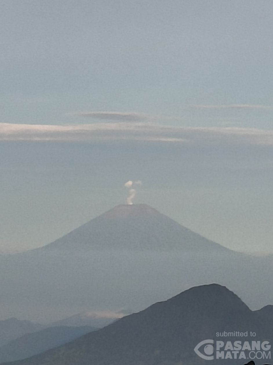 Puncak Gunung Slamet pagi ini terlihat mengeluarkan asap putih. Foto diambil dari Sunrise Camp Prau, Wonosobo.