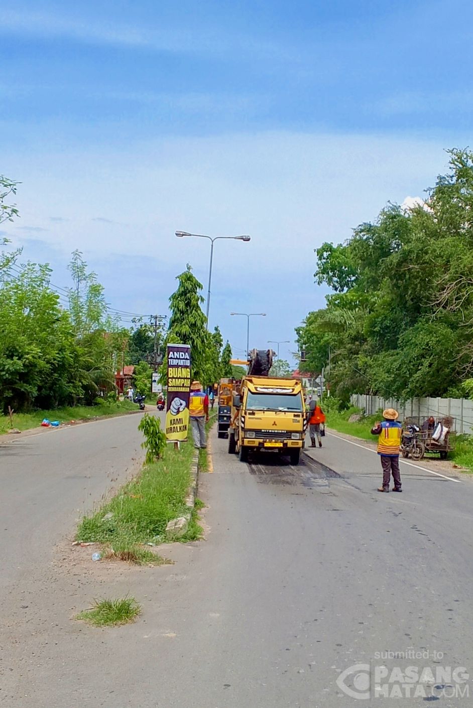 Himbauan kepada pengguna sepeda motor Untuk berhati-hati saat melintas pada malam hari dijalan Lintas Nasional dari Medan menuju Banda Aceh, karena saat ini sedang dilakukan perbaikan jalan sepanjang Area Muara Satu Kota Lhokseumawe, Minggu, 19/4/2026 Foto. Fauzan pewarta