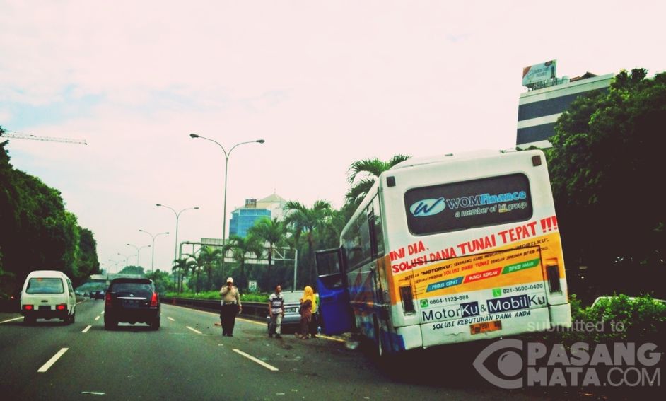 Bus mayasari sruduk sedan di Tol Jorr arah ragunan, sudah ada petugas yg menangani