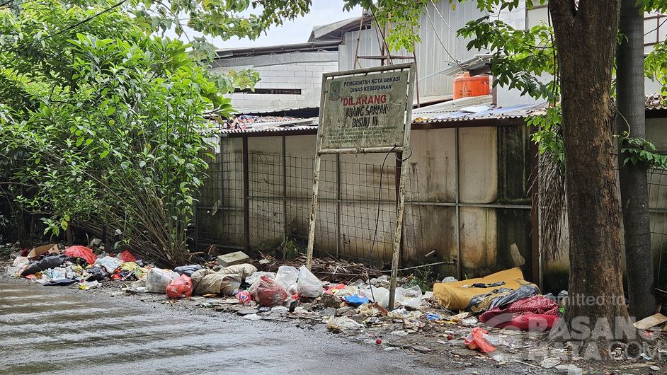Sudah ada peringatan di larang buang sampah tapi warga masih nekat buang sampah. Lokasi samping jalan tol Jatiwarna Bekasi arah. TMII