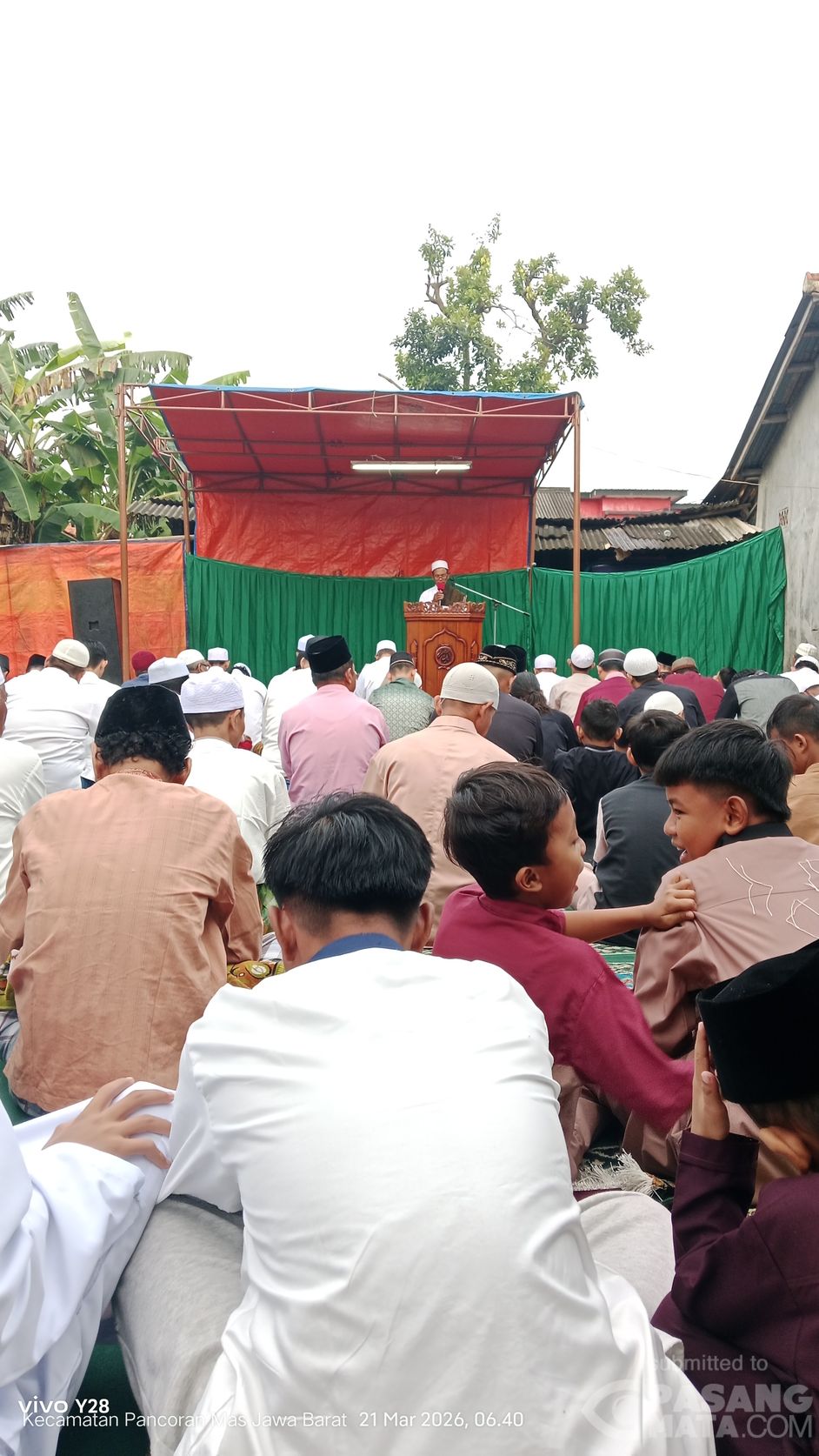 Warga kampung jemblongan jalan Swadaya 1 Pancoran Mas Depok Jawa Barat tampak melaksanakan sholat idul fitri 1447 H