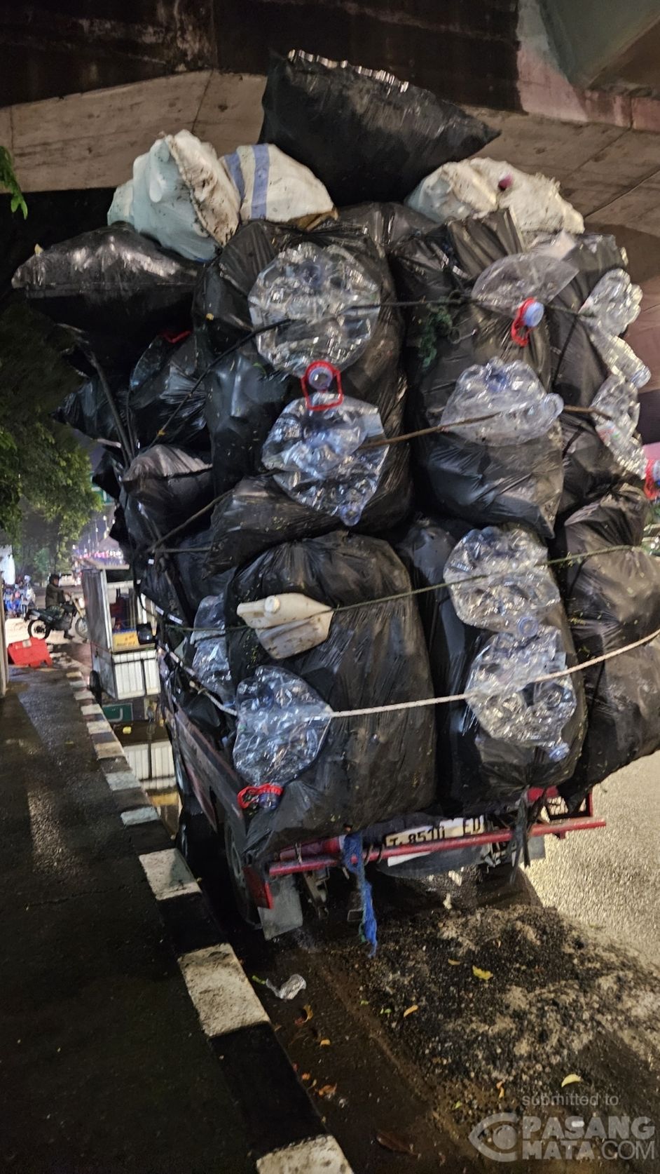 Mobil Pick Up dengan Muatan Botol Mineral Berlebih