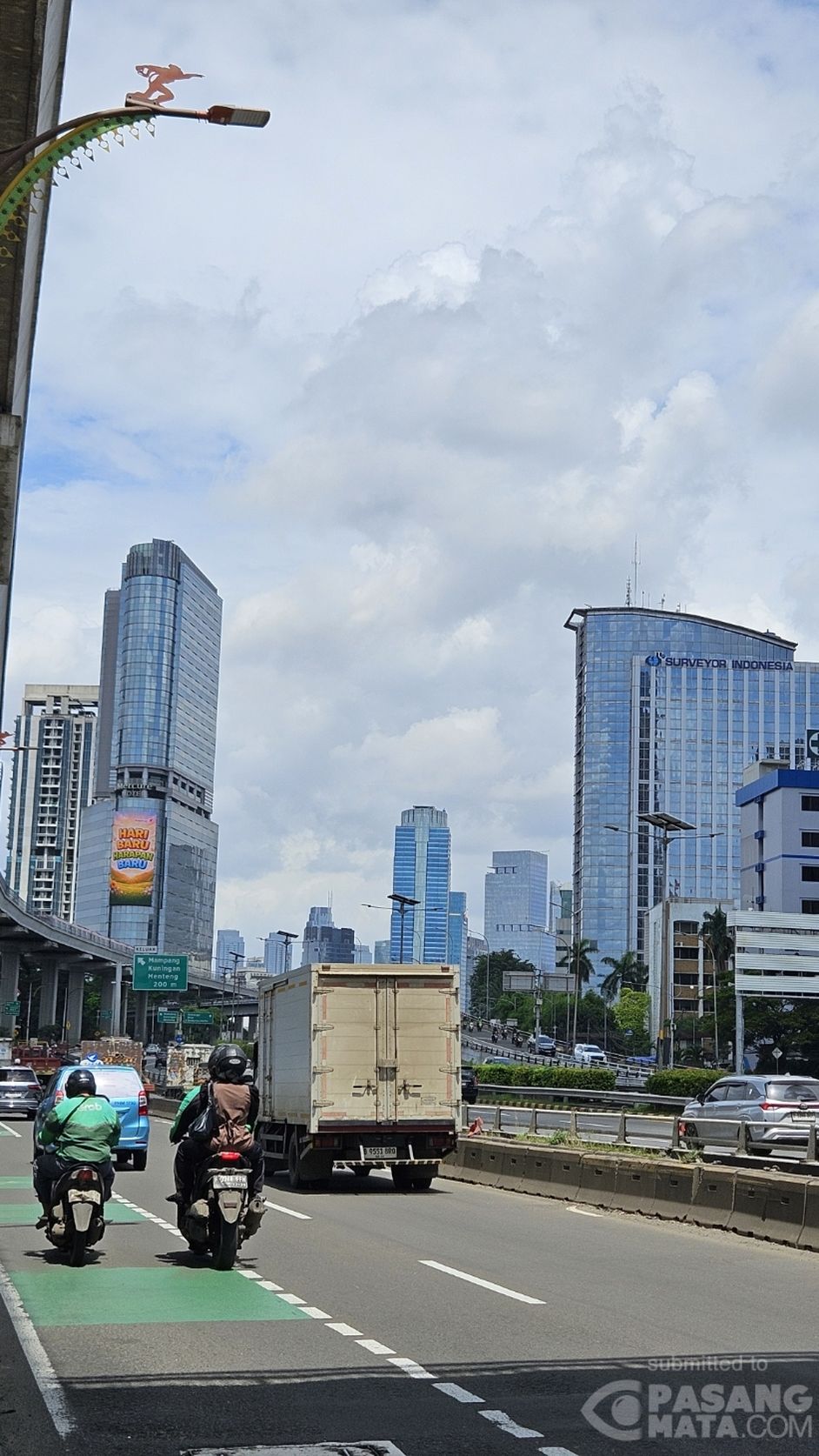 Siang ini cuaca Jakarta dan sekitarnya tampak berawan. Lokasi jalan Gatot Subroto Jakarta.