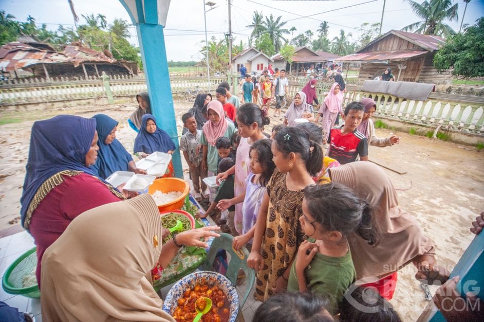 Laznas Al Irsyad bersama relawan lokal membangun dapur umum di Mushola Tepah untuk melayani kebutuhan makan sehari-hari warga korban banjir di Desa Matang Tepah, Kecamatan Bendahara, Kabupaten Aceh Tamiang. 17 Desember 2025.